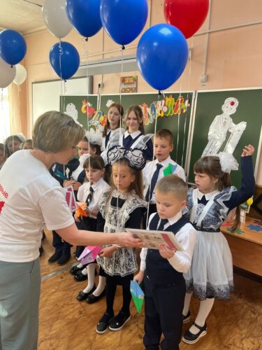 Сегодня, в День Знаний, специалист местного отделения Движения Первых Жердевского округа поздравила первоклассников МБОУ «Жердевская СОШ» с праздником, и вручила ребятам небольшие подарочки от Т2 и Движения Первых.